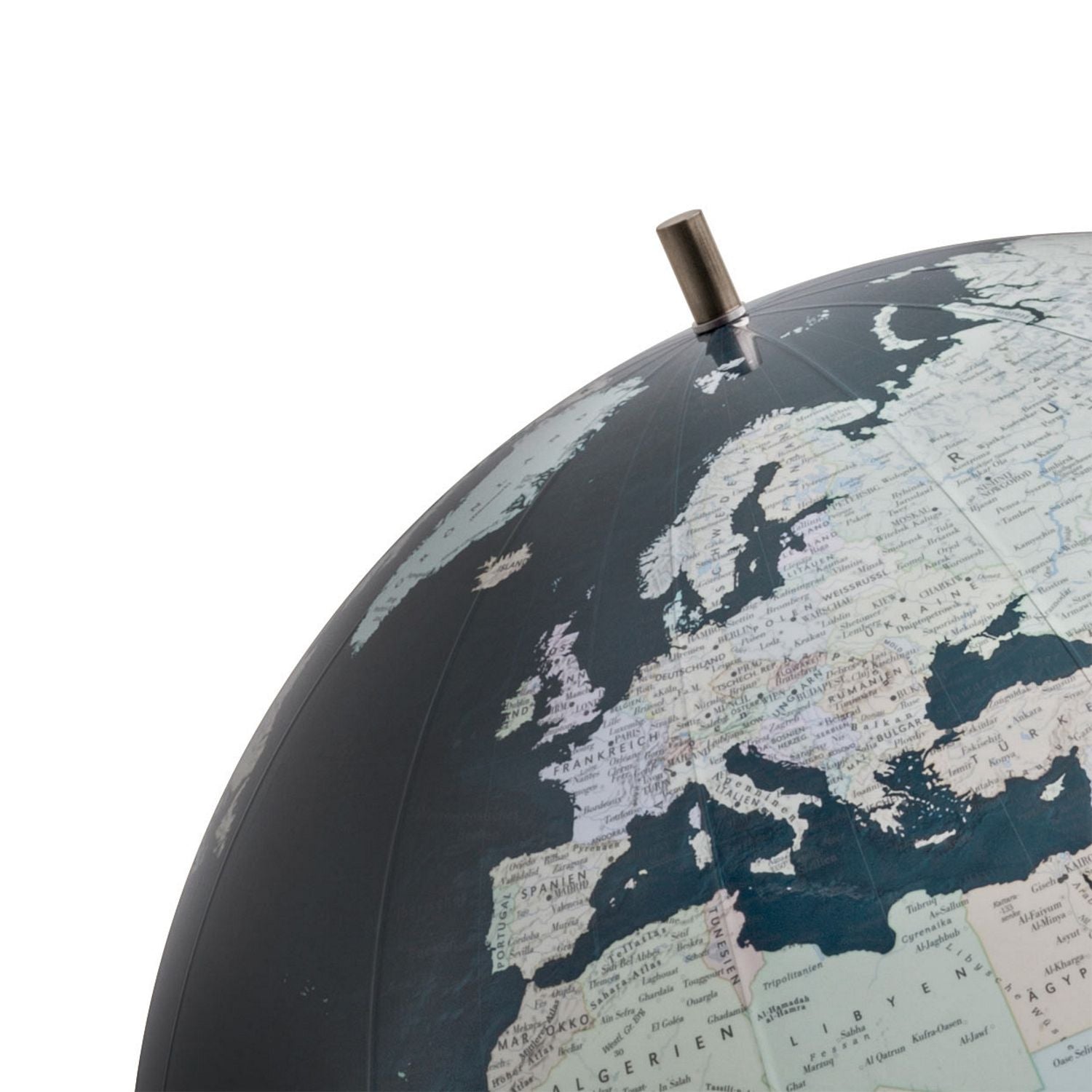 Columbus BLACK SERIES Standglobus Modell "Radiant" mit 60 cm Durchmesser und Beleuchtung, Acrylglas und EdelstahlDie Modelle der COLUMBUS BLACK SERIES sind Globen von höchstem Designniveau, alles andere als gewöhnlich und darüber hinaus noch einzigartig. Die dunklen Farben und das hochwertige Edelstahlgestell fügen sich zu einem äußerst eleganten und modernen Erscheinungsbild zusammen. Im unbeleuchteten Zustand zeigt das Sonderkartenbild des BLACK SERIES Globus die politischen Grenzen der Länder auf der Erde, basierend auf aktuellsten Daten. Von den schwarzen Gewässern heben sich die Kontinente in blassen Farben ab. Durch die verschieden eingefärbten Länder können einerseits die Grenzen leichter erkannt werden, zum anderen ergeben sie eine harmonische Einheit. Die silbrig schimmernden Beschriftungen, die dunklen Farben und der glänzende Stahl erzeugen den Eindruck von besonderer Extravaganz.