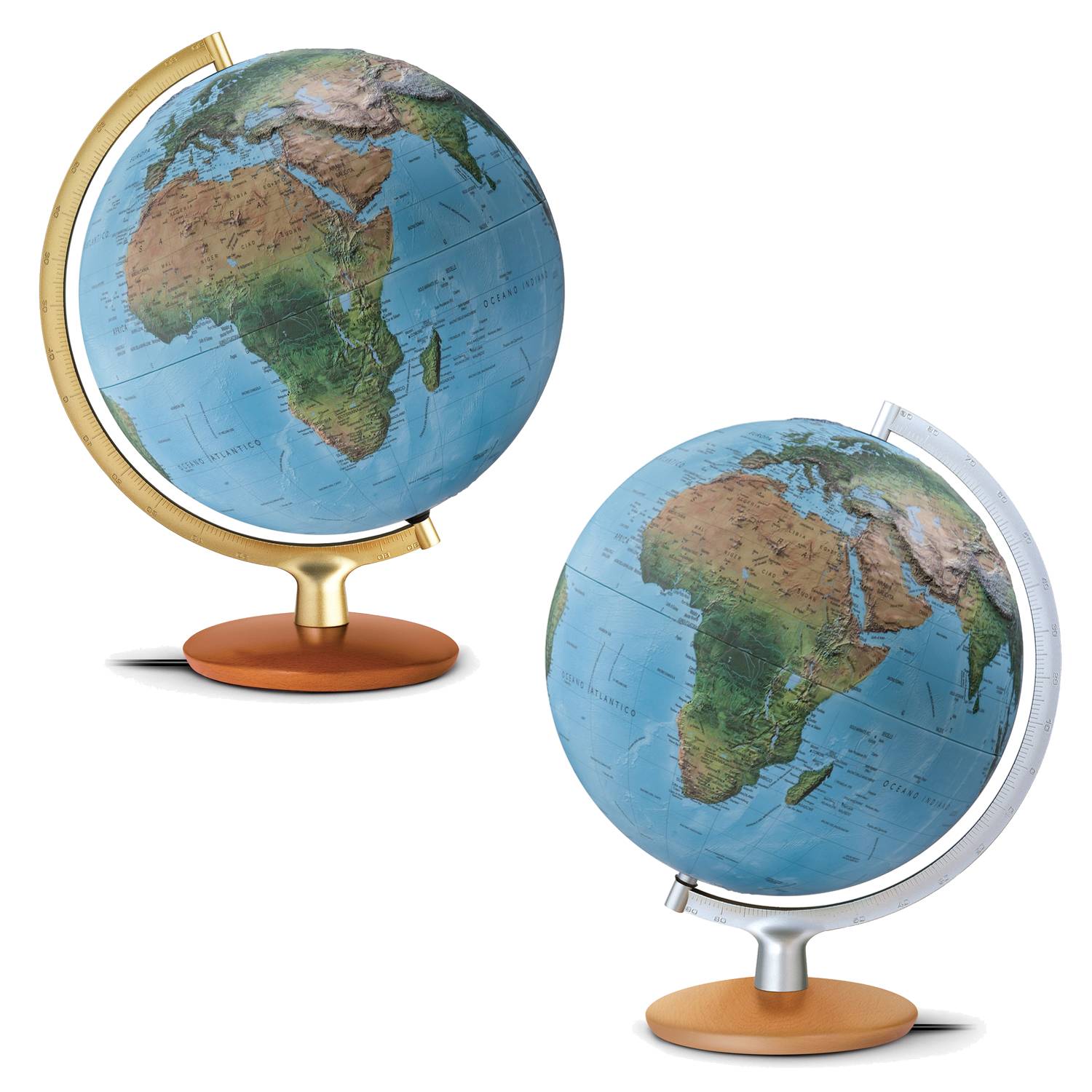 Räthgloben Relief-Leuchtglobus, 30cm D 41cm H, Doppelbild, fühlbare 3D-Oberfläche, verschiedene VariantenDieser Relief-Leuchtglobus von Räthgloben, weist eine besondere 3D-Oberflächenstruktur auf, welche es dem*der Benutzer*in ermöglicht, die unterschiedlichen Höhenunterschiede unserer Erde zu erfühlen. Darüber hinaus verfügt dieser Globus auch über die beliebte Doppelbild-Funktion. Wird der Globus beleuchtet zeigt er ein politisches Kartenbild. Unbeleuchtet kann ein physisches Kartenbild entdeckt werden. Die Beschriftung ist in gut leserlicher, deutscher Sprache verfasst.